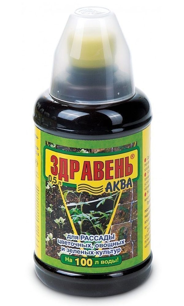 «ЗДРАВЕНЬ АКВА» для рассады цветочных, овощных и зеленных культур – жидкое комплексное органоминеральное удобрение для корневой и некорневой подкормки рассады (овощных, цветочных и зеленных культур) в личных подсобных хозяйствах.