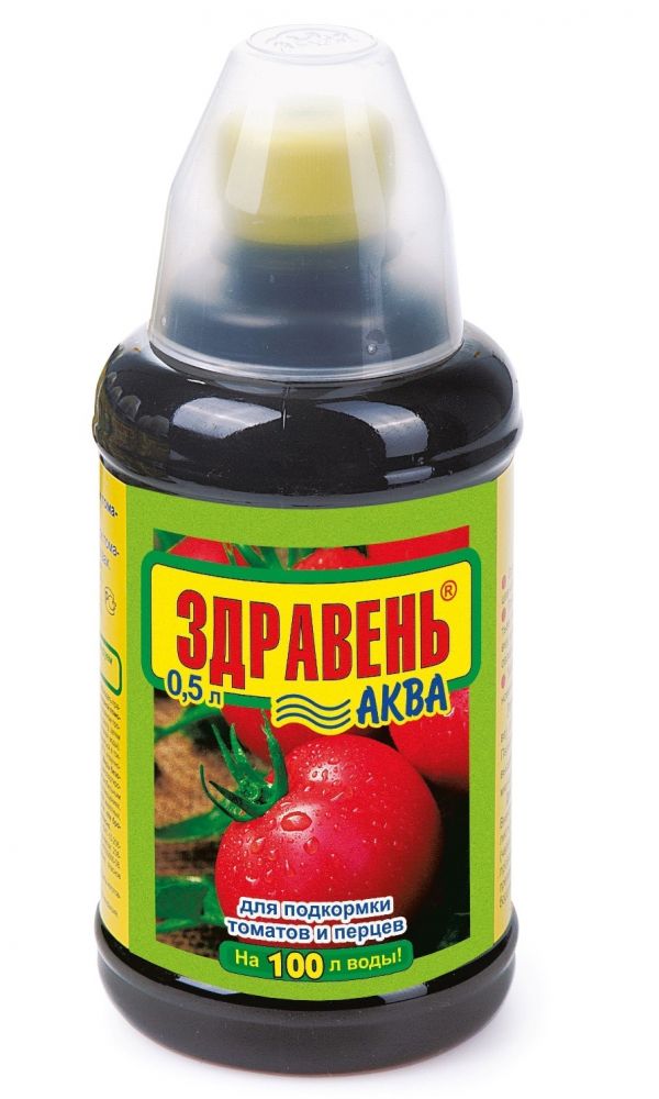 «ЗДРАВЕНЬ АКВА» для подкормки томатов и перцев – жидкое комплексное органоминеральное удобрение для корневых и внекорневых подкормок томатов и перцев в личных подсобных хозяйствах.