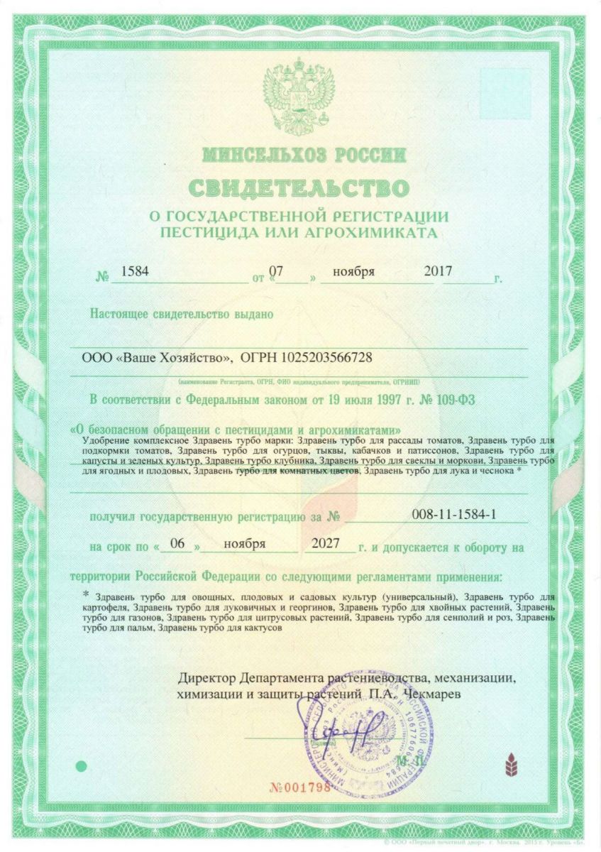 Применение: при корневой подкормке (с поливом) растворить «Здравень» в тёплой воде.